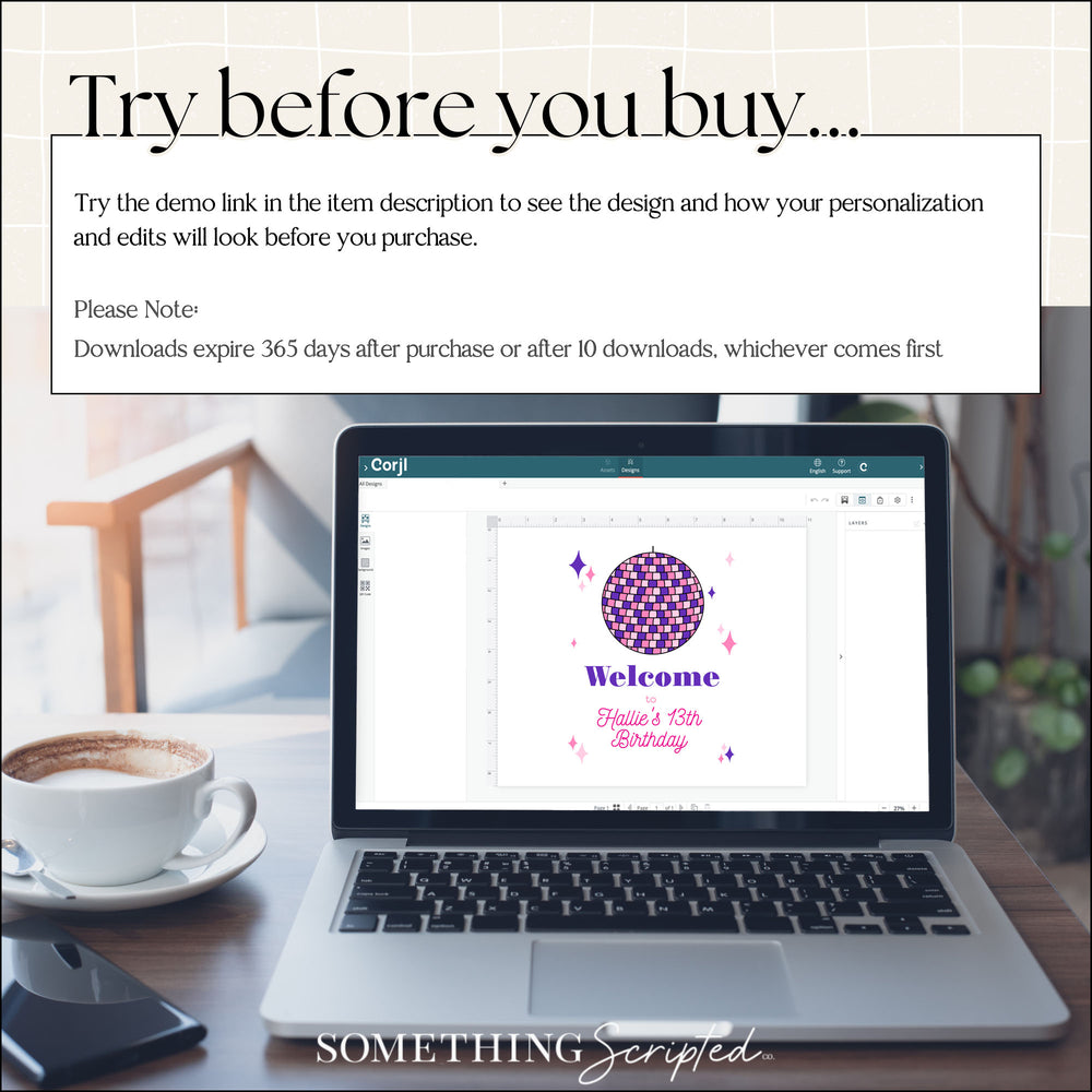 Something Scripted Co does not guarantee perpetual storage of any purchased items. Buyers are responsible for downloading purchases within 10 days of order fulfillment. This is a digital download therefore no returns, refunds or exchanges will be processed. Please email hello@somethingscriptedco.com if you have any issues with your order.