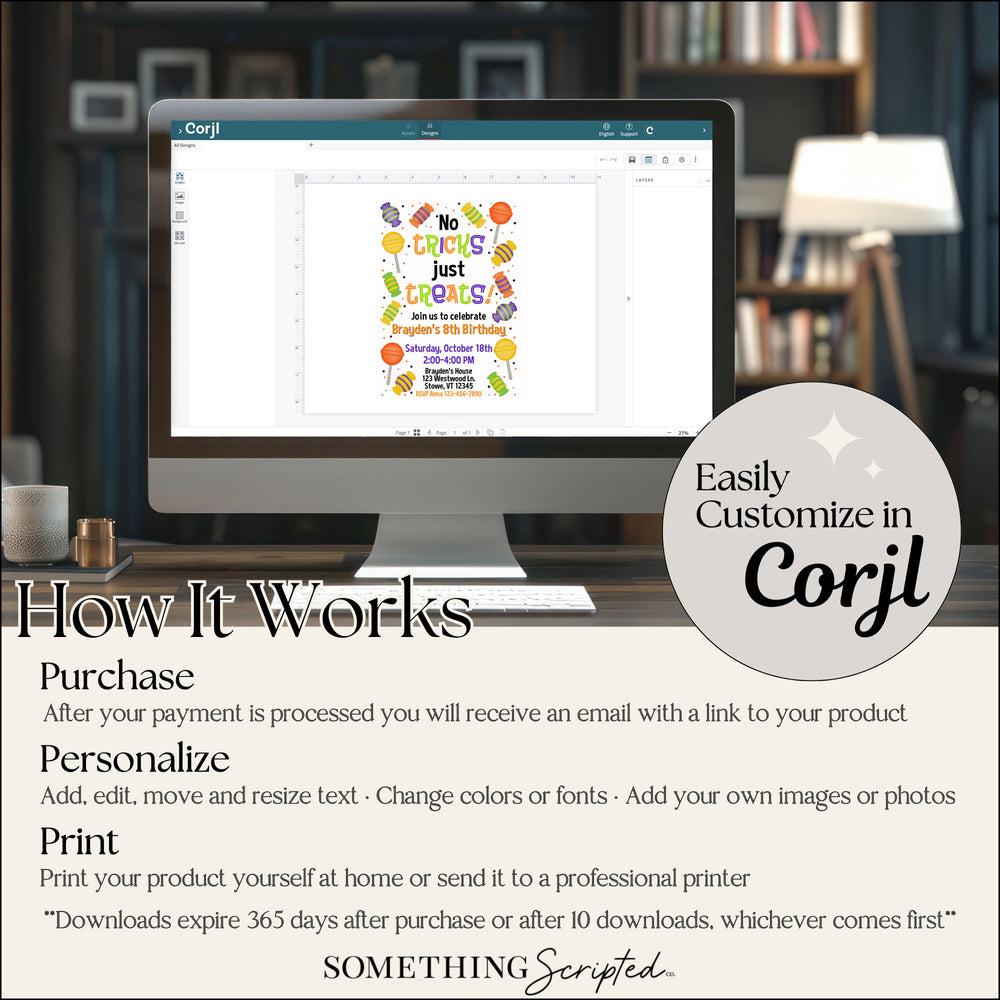 nvite your guests to a spooktacular celebration with this Halloween candy invitation! Perfect for kids’ Halloween parties, classroom events, trick-or-treat gatherings, or fall festivals, this printable invite is bursting with colorful candy-themed charm.